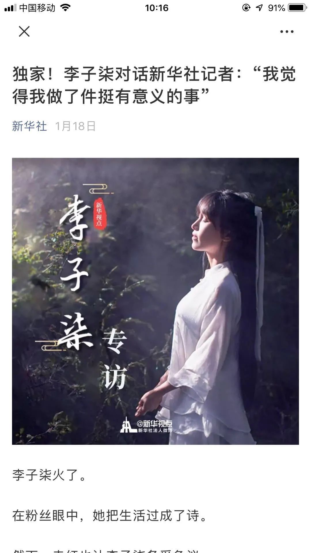 就连新华社,都曾两次采访报道过李子柒。(新华社一般情况下只报道国家大事的)