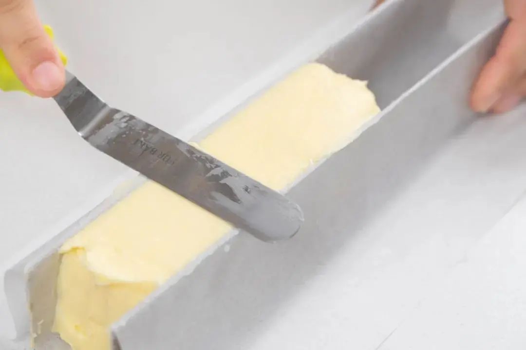 13.模具中垫油纸,将黄油填入模具内,用刮刀抹平。