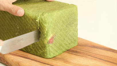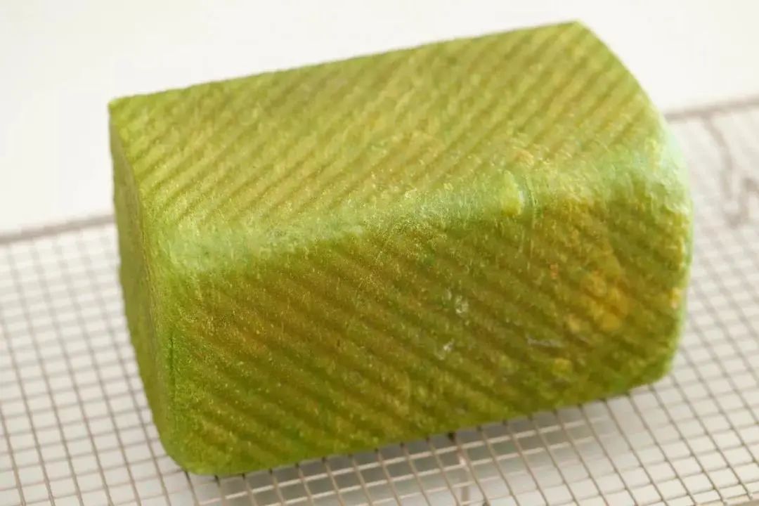 这个西瓜吐司属于仿真系列的吐司,切成三角形之后就活脱脱的一块西瓜放在那里呢。