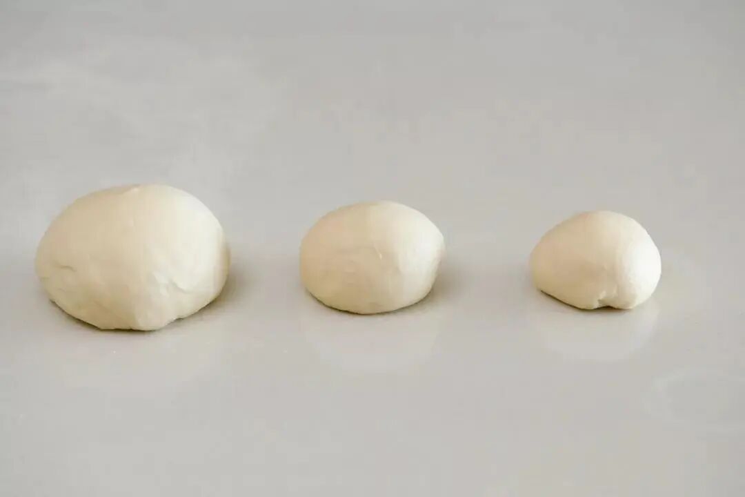 5.揉好的面团分成三部分,重量比例大约是6:2.5:1.5。