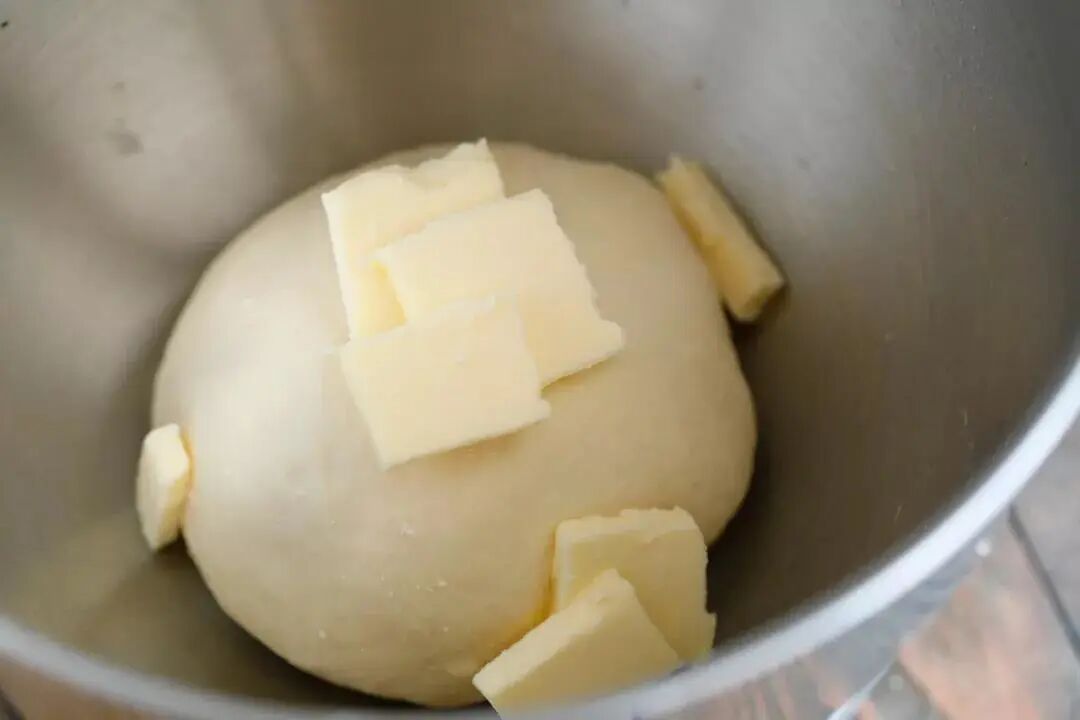 3.加入提前软化的27g黄油,开启4档揉至10分钟左右,揉至完全阶段。