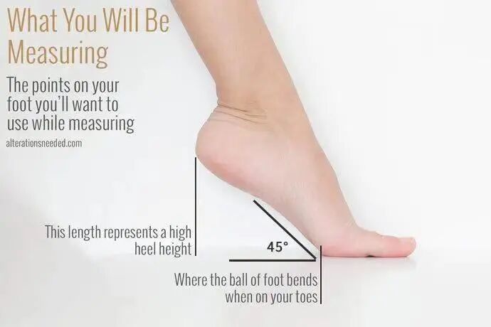 还有一种方法是我们把脚踮起来然后抬高到大概45度这个高度,这时候可以量一下后脚跟的高度,这个就是你能承受的最大高度。