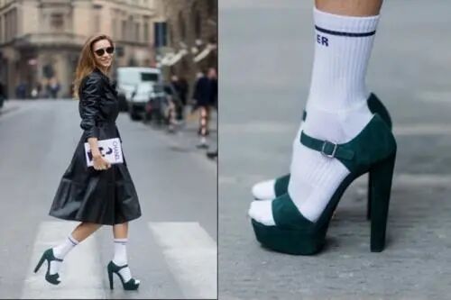 在时尚圈来说什么都有可能,所以高跟鞋配袜子的存在也是有的。
