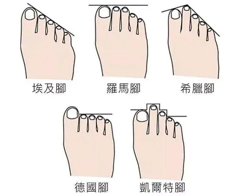 怎么判断自己的脚型呢?首先是看脚趾头: