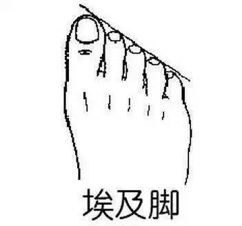 因为埃及脚的大拇指比其它四根都要长,整体形状呈斜坡状,所以特别不适合尖头鞋。