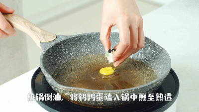 2. 热锅倒油,将鹌鹑蛋磕入锅中煎至熟透,盛出备用