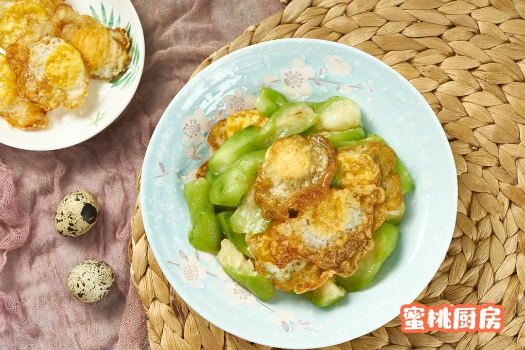 就这道菜来说,丝瓜与鹌鹑煎蛋的搭配,是相得益彰的~