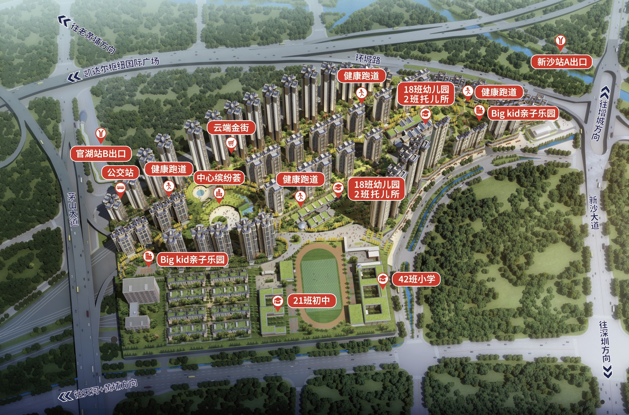 教育资源丰富,华附在旁,社区即可实现全龄段的12年教育