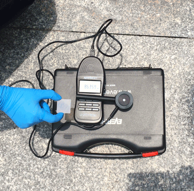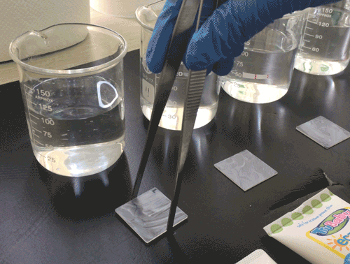再将涂有防晒霜的玻片浸水20min后拿出,自然风干15min后,重复上述操作一次,检测防晒霜防晒能力。