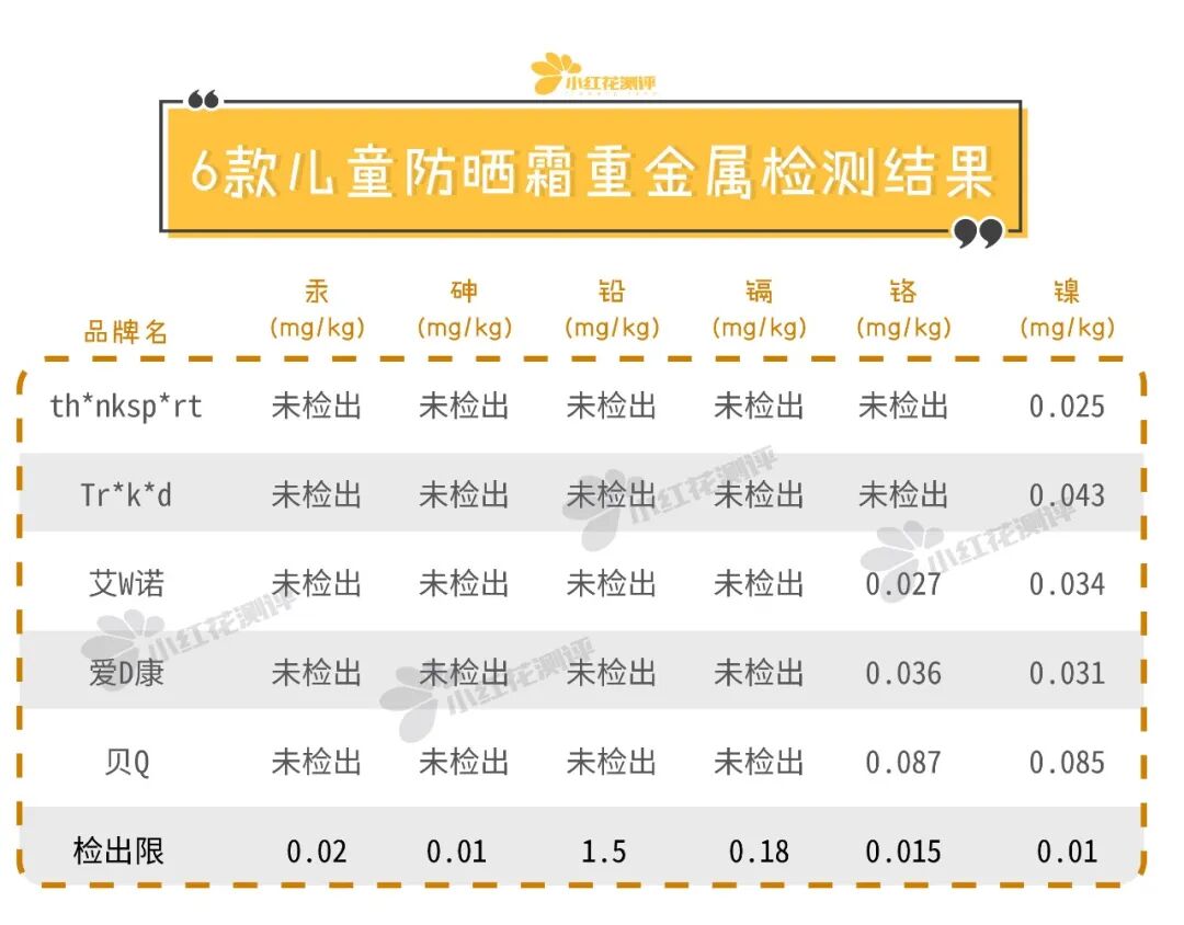 为了安全起见,花爸将Tr*k*d、艾W诺、Th*nksp*rt、爱D康、贝Q送去实验室进行以下风险物质检测: