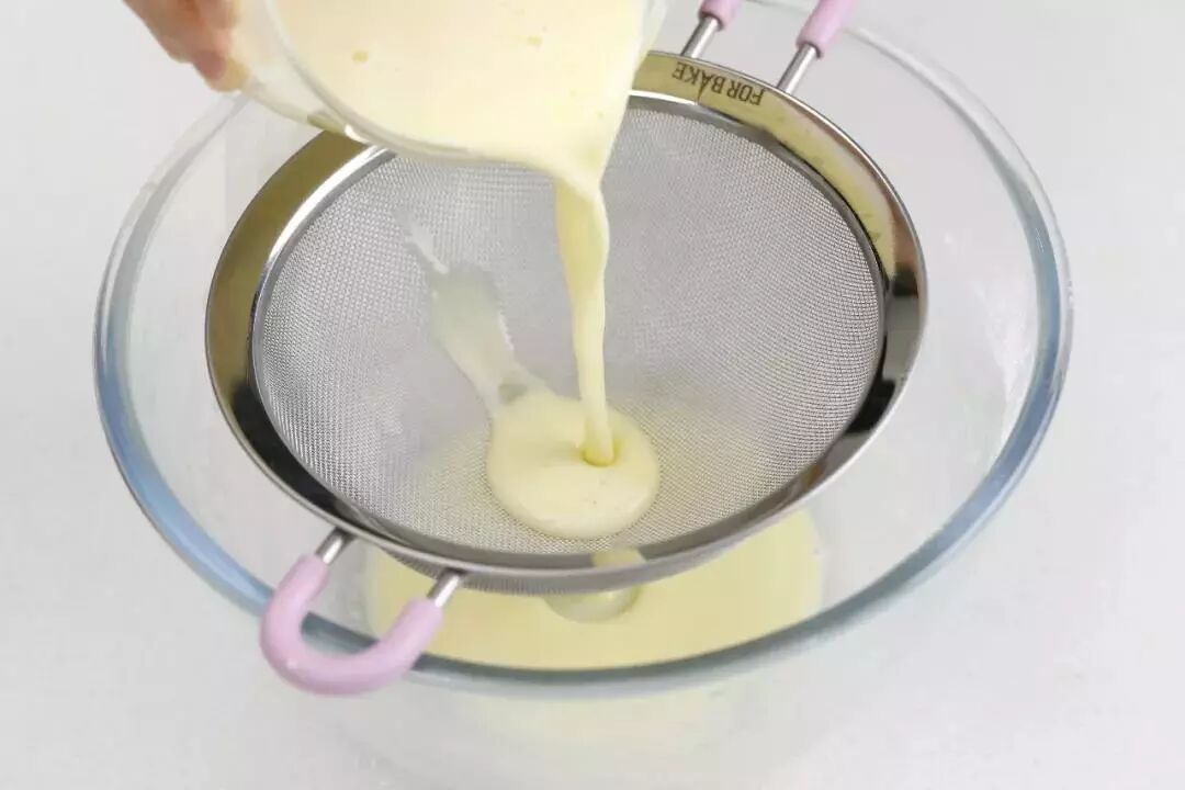 5. 搅拌好的混合液可以过筛一遍,做出来的口感更细腻。