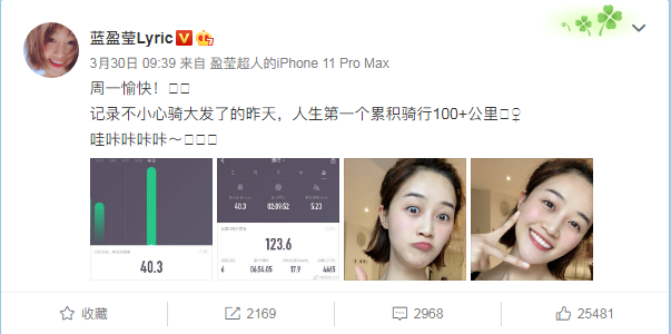 可以看得出蓝盈莹非常喜欢运动,运动让她的体力比一般人要好,早前还在网上晒过马甲线。