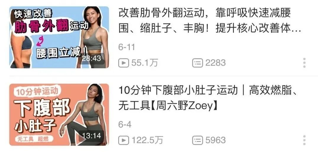 如果你臀部不好看,或者是上腹部不胖,但是下腹部又非常多肉的这些细分类运动,你都可以在周六野这里找到对应的,然后对号入座。
