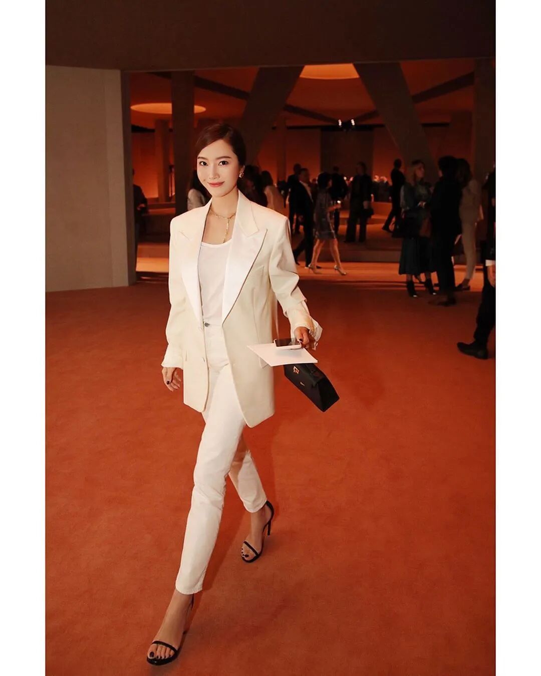 因为季节的原因,深色系的套装令池宣宇显得格外专业,同时也十分严肃。