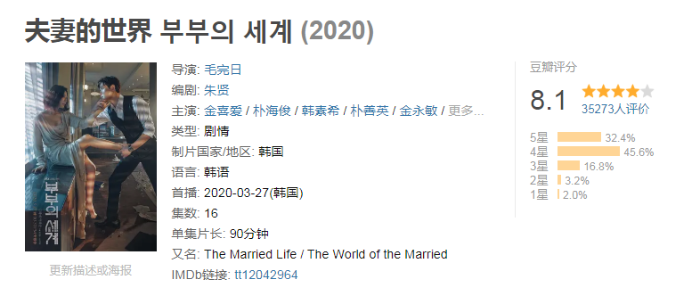 集出轨,家暴,渣男渣女如一身的高分韩剧《夫妻的世界》。