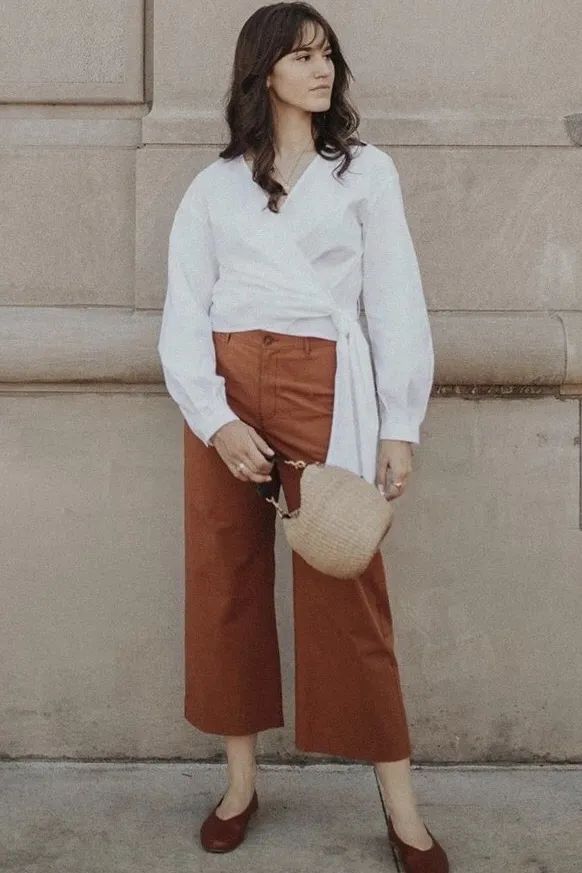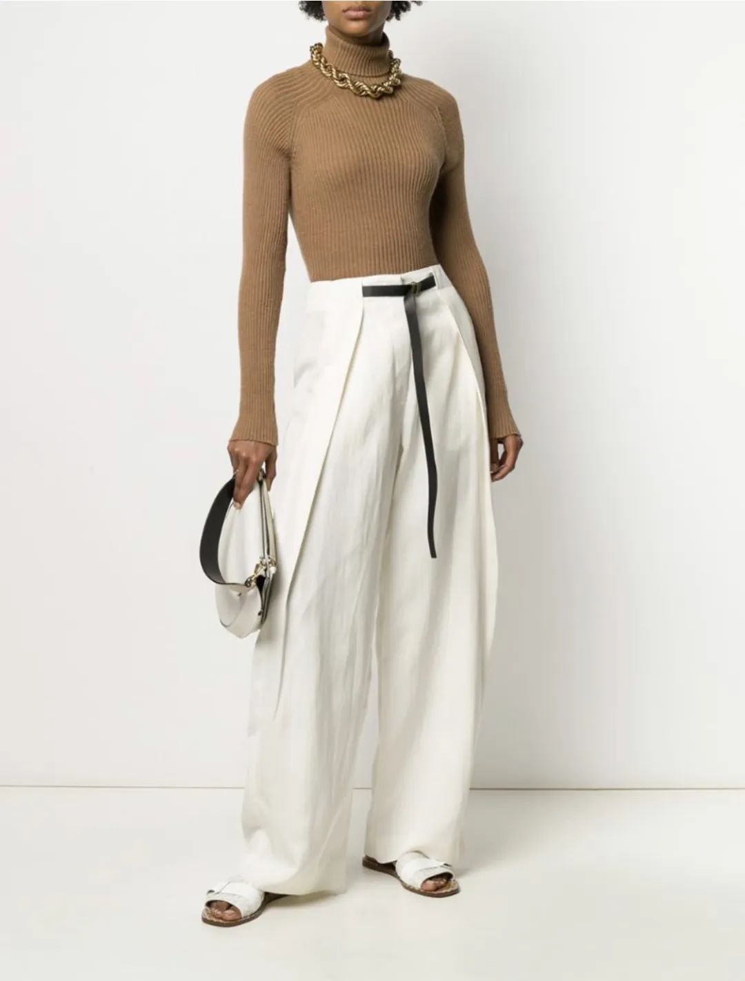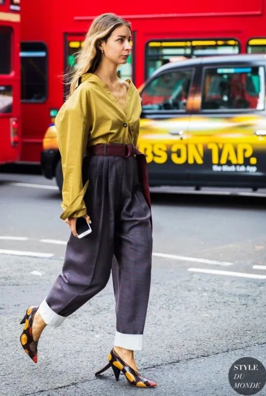 面料垂坠挺括的阔腿裤、高腰长直筒、锥形裤等也是不错的选择。