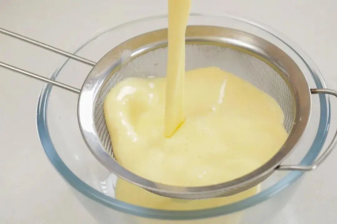 5. 将蛋奶液过筛一次会更加细腻。