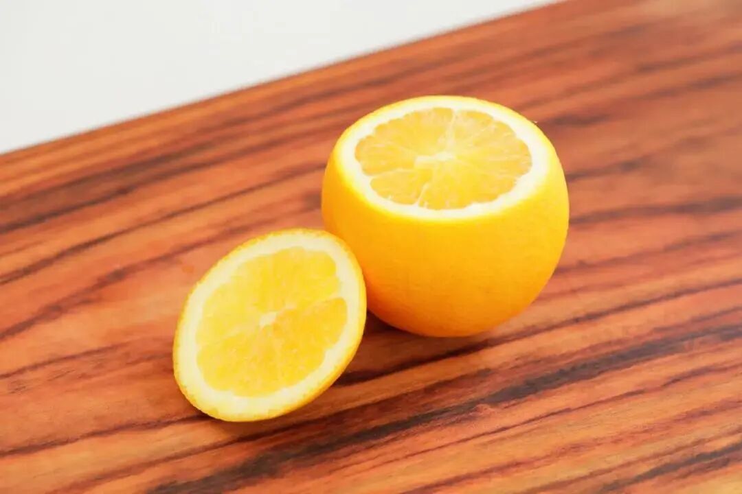 1. 香橙从顶部1/3处切开。