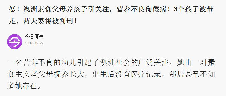 澳洲父母用素食喂养孩子,导致3名孩子营养不良。
