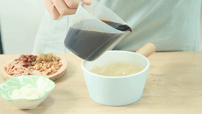 7、将大碗装的蝶豆花水倒入锅中