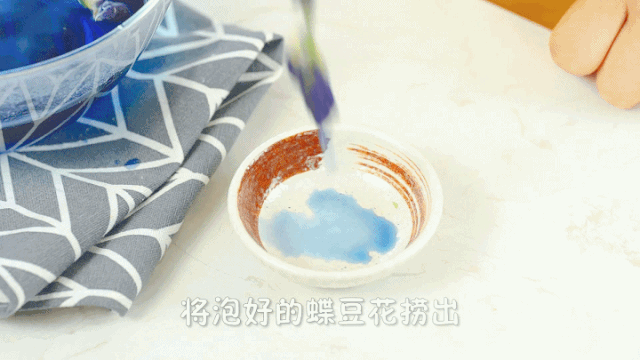 2、将泡好的蝶豆花捞出