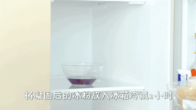 12、将凝固后的冰粉放冰箱冷藏1小时