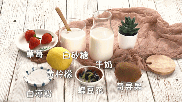 14、放入切好的水果,再倒入冰牛奶