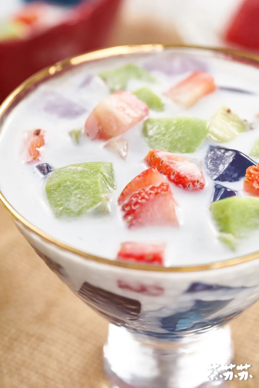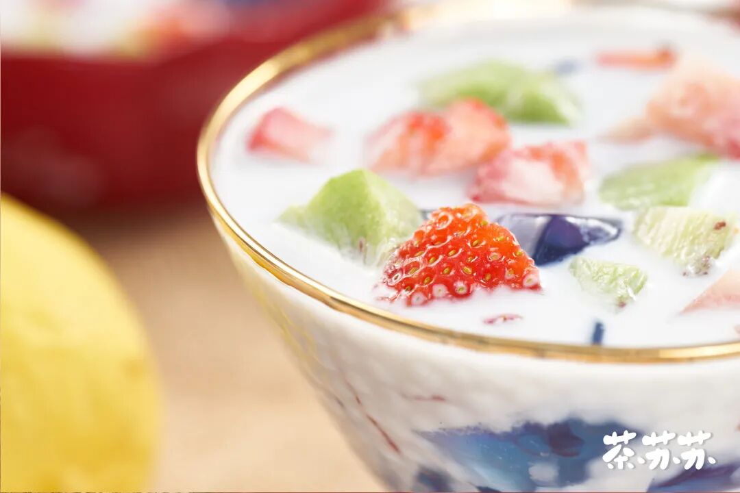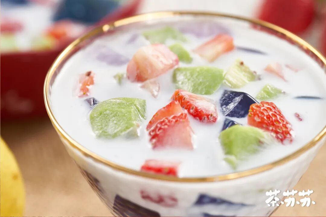 为了让口感更丰富,我还加上了猕猴桃和草莓,Q弹的冰粉配上酸酸甜甜的水果,这味道苏苏很是喜欢~