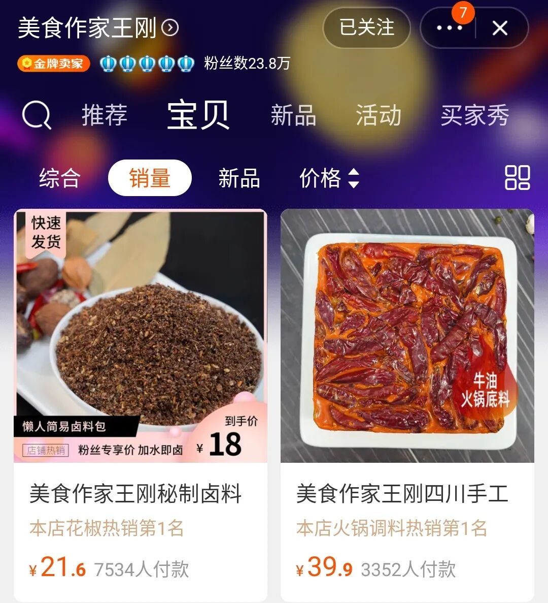成立自己的团队后,也开始运营淘宝了,店铺里除了不少好吃的,还有锅具等,大家感兴趣可以去康康~
