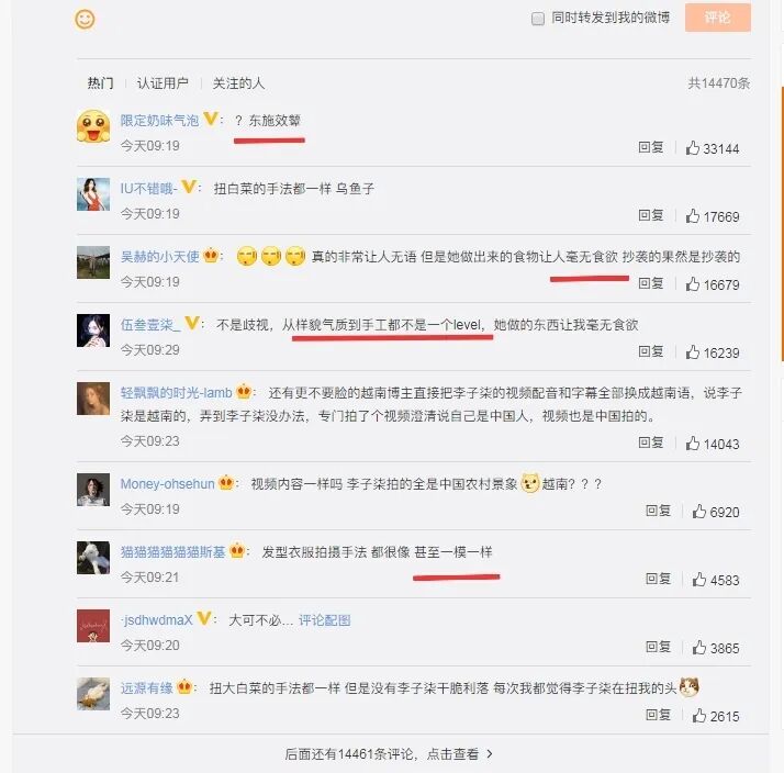 <section style="font-size: 15px;letter-spacing: 1px;line-height: 2;padding-right: 8px;padding-left: 8px;box-sizing: border-box;"><section style="text-align: center;margin-top: 10px;margin-bottom: 10px;box-sizing: border-box;" powered-by="xiumi.us"><img src=http://7xpmja.com2.z0.glb.qiniucdn.com/b5b9c3ff63b92c6227232d442f13a27c_1.png class="rich_pages" data-cropselx1="0" data-cropselx2="578" data-cropsely1="0" data-cropsely2="63" data-ratio="0.109375" data-src="https://mmbiz.qpic.cn/mmbiz_png/oPuqyFiauSd7Hamamib1ksYw8HxRaib7KMibJAlvoxONicHlGThQoITE3VVQVslnYvydcr9gkSHePppibmQiaa3dH1bjg/640?wx_fmt=png" data-type="png" data-w="640" style="width: 578px;height: 63px;"  /><section style="max-width: 100%;vertical-align: middle;display: inline-block;line-height: 0;box-sizing: border-box;"><br  /></section></section><section style="box-sizing: border-box;" powered-by="xiumi.us"><p style="text-align: center;"><br  /></p><p style="white-space: normal;box-sizing: border-box;">前段时间看到一个令橘子君无比生气的热搜!!</p><p style="white-space: normal;box-sizing: border-box;"><br style="box-sizing: border-box;"  /></p></section><section style="text-align: center;margin-top: 10px;margin-bottom: 10px;box-sizing: border-box;" powered-by="xiumi.us"><section style="max-width: 100%;vertical-align: middle;display: inline-block;line-height: 0;border-style: solid;border-width: 4px;border-radius: 0px;border-color: rgb(254, 178, 38);box-sizing: border-box;"><img src=http://7xpmja.com2.z0.glb.qiniucdn.com/b5b9c3ff63b92c6227232d442f13a27c_2.png data-ratio="0.1366594" data-src="https://mmbiz.qpic.cn/mmbiz_png/oPuqyFiauSd723F6oV1a5Gc1zS9J2MD5iaCwW6EeEhOLylYsMc4VZf4cb7SZhuNdZ1LPUOJ5Jh64XuibahpBQFIpA/640?wx_fmt=png" data-type="png" data-w="461" style="vertical-align: middle;box-sizing: border-box;"  /></section></section><section style="box-sizing: border-box;" powered-by="xiumi.us"><p style="white-space: normal;box-sizing: border-box;"><br style="box-sizing: border-box;"  /></p><p style="white-space: normal;box-sizing: border-box;">一越南女子因抄袭李子柒而火,不管是发型、服装、动作、拍摄手法、运镜等等,几乎都和李子柒一模一样啊!</p><p style="white-space: normal;box-sizing: border-box;"><br style="box-sizing: border-box;"  /></p></section><section style="text-align: center;margin-top: 10px;margin-bottom: 10px;box-sizing: border-box;" powered-by="xiumi.us"><section style="max-width: 100%;vertical-align: middle;display: inline-block;line-height: 0;box-sizing: border-box;"><img src=http://7xpmja.com2.z0.glb.qiniucdn.com/b5b9c3ff63b92c6227232d442f13a27c_3.png class="rich_pages" data-ratio="0.344097995545657" data-s="300,640" data-type="png" data-w="898" data-src="https://mmbiz.qpic.cn/mmbiz_png/cWRIEOQcQmyN4zYSndfW79YRt9suctrRicLqHMEibD1rMiaqnMciaibDYga0h4loleGDWr8POsEicvhib4WX2LuOz9w/640?wx_fmt=png" style="font-family: -apple-system-font, BlinkMacSystemFont, "Helvetica Neue", "PingFang SC", "Hiragino Sans GB", "Microsoft YaHei UI", "Microsoft YaHei", Arial, sans-serif;letter-spacing: 0.544px;text-align: center;white-space: normal;background-color: rgb(255, 255, 255);box-sizing: border-box !important;word-wrap: break-word !important;width: 592px !important;visibility: visible !important;"  /></section></section><section style="box-sizing: border-box;" powered-by="xiumi.us"><p style="text-align: left;white-space: normal;box-sizing: border-box;"><br style="box-sizing: border-box;"  /></p><p style="text-align: left;white-space: normal;box-sizing: border-box;">而且有些视频海外播放量已经破百万了!</p><p style="text-align: left;white-space: normal;box-sizing: border-box;"><br  /></p><p style="text-align: left;white-space: normal;box-sizing: border-box;"><img src=http://7xpmja.com2.z0.glb.qiniucdn.com/b5b9c3ff63b92c6227232d442f13a27c_4.png class="rich_pages" data-ratio="0.6707317073170732" data-s="300,640" data-type="png" data-w="656" data-src="https://mmbiz.qpic.cn/mmbiz_png/cWRIEOQcQmyN4zYSndfW79YRt9suctrRLxCWdmiayQ7mn2HxCEf9eJ2ibQVKburicZMsXwX8icMgS9WjeksJjLHabQ/640?wx_fmt=png" style="font-family: -apple-system-font, BlinkMacSystemFont, "Helvetica Neue", "PingFang SC", "Hiragino Sans GB", "Microsoft YaHei UI", "Microsoft YaHei", Arial, sans-serif;letter-spacing: 0.544px;text-align: center;white-space: normal;background-color: rgb(255, 255, 255);box-sizing: border-box !important;word-wrap: break-word !important;width: 592px !important;visibility: visible !important;"  /></p><p style="white-space: normal;box-sizing: border-box;"><br  /></p><p style="white-space: normal;box-sizing: border-box;">大家品品这些图:</p><p style="white-space: normal;box-sizing: border-box;"><br style="box-sizing: border-box;"  /></p></section><section style="text-align: center;margin-top: 10px;margin-bottom: 10px;box-sizing: border-box;" powered-by="xiumi.us"><section style="max-width: 100%;vertical-align: middle;display: inline-block;line-height: 0;box-sizing: border-box;"><img src=http://7xpmja.com2.z0.glb.qiniucdn.com/b5b9c3ff63b92c6227232d442f13a27c_5.jpeg data-ratio="2.812037" data-src="https://mmbiz.qpic.cn/mmbiz_jpg/oPuqyFiauSd723F6oV1a5Gc1zS9J2MD5iaKrbzWb5bPLyojkcRoaicnDmk0K8hjsbNocobgudNVx6G8GibehDMEBnQ/640?wx_fmt=jpeg" data-type="jpeg" data-w="1080" style="vertical-align: middle;box-sizing: border-box;"  /></section></section><section style="box-sizing: border-box;" powered-by="xiumi.us"><p style="max-width: 100%;min-height: 1em;font-family: -apple-system-font, BlinkMacSystemFont, "Helvetica Neue", "PingFang SC", "Hiragino Sans GB", "Microsoft YaHei UI", "Microsoft YaHei", Arial, sans-serif;letter-spacing: 0.544px;white-space: normal;background-color: rgb(255, 255, 255);box-sizing: border-box !important;word-wrap: break-word !important;"><br  /></p><p>她确定不是一键复制粘贴??视频相似度已经接近90%了,<strong>居然还有同款狗子、同款奶奶.....<img src=http://7xpmja.com2.z0.glb.qiniucdn.com/b5b9c3ff63b92c