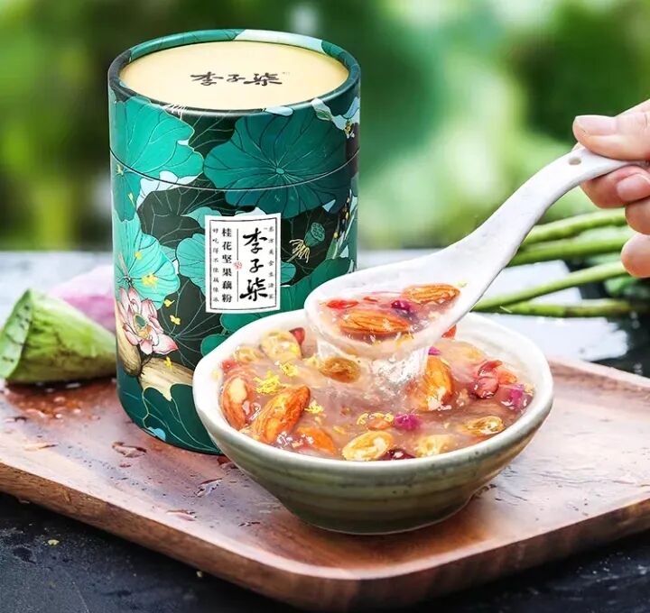李子柒藕粉是我买过觉得最值的:淡淡的桂花香、口感顺滑、每一口都是坚果和果干!有时候忙起来,晚饭只吃它就够饱腹了~
