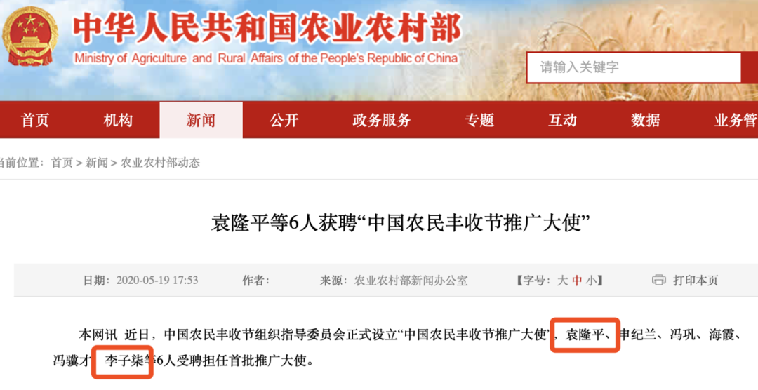 前不久,仙女李子柒还和袁隆平获得同一个荣誉——“中国农民丰收节推广大使”呢!!