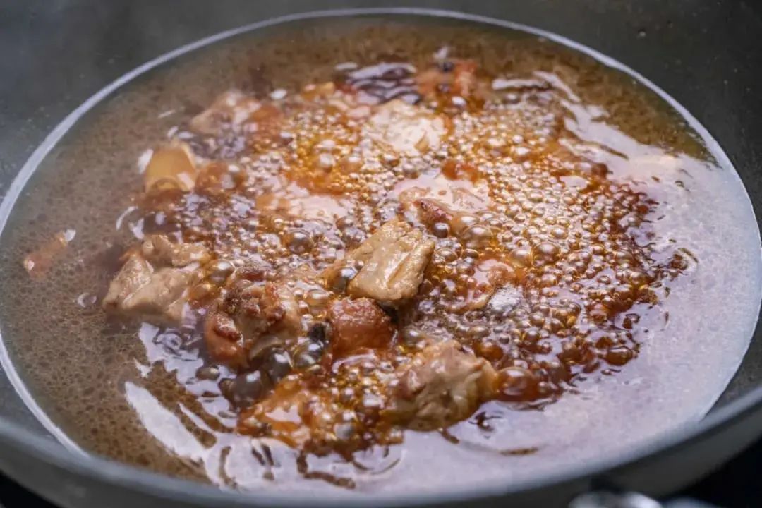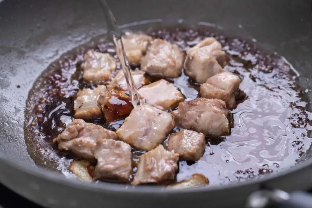 4.加入适量的清水,稍稍没过排骨,继续大火加热。
