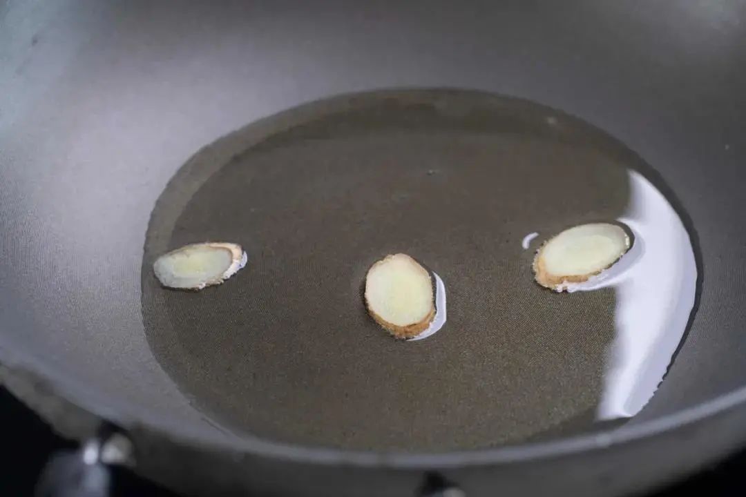 1.锅中加入少许食用油和3片生姜,大火加热。
