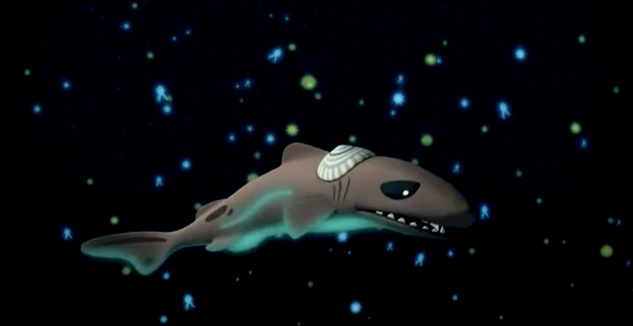 正在这个时候,皮医生发现有一个闪闪发光的东西迎面而来。这个闪闪发光的会是小鲨鱼吗?