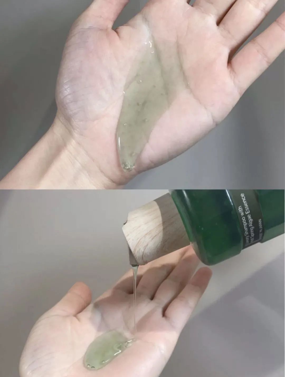 中性香的味道完全不刺鼻,质地超水潮润!倒出来的竹绿色看起来就是满满的高级感。不刺激,清新疗愈,洗完头发之后只会感觉到放松和凉爽。