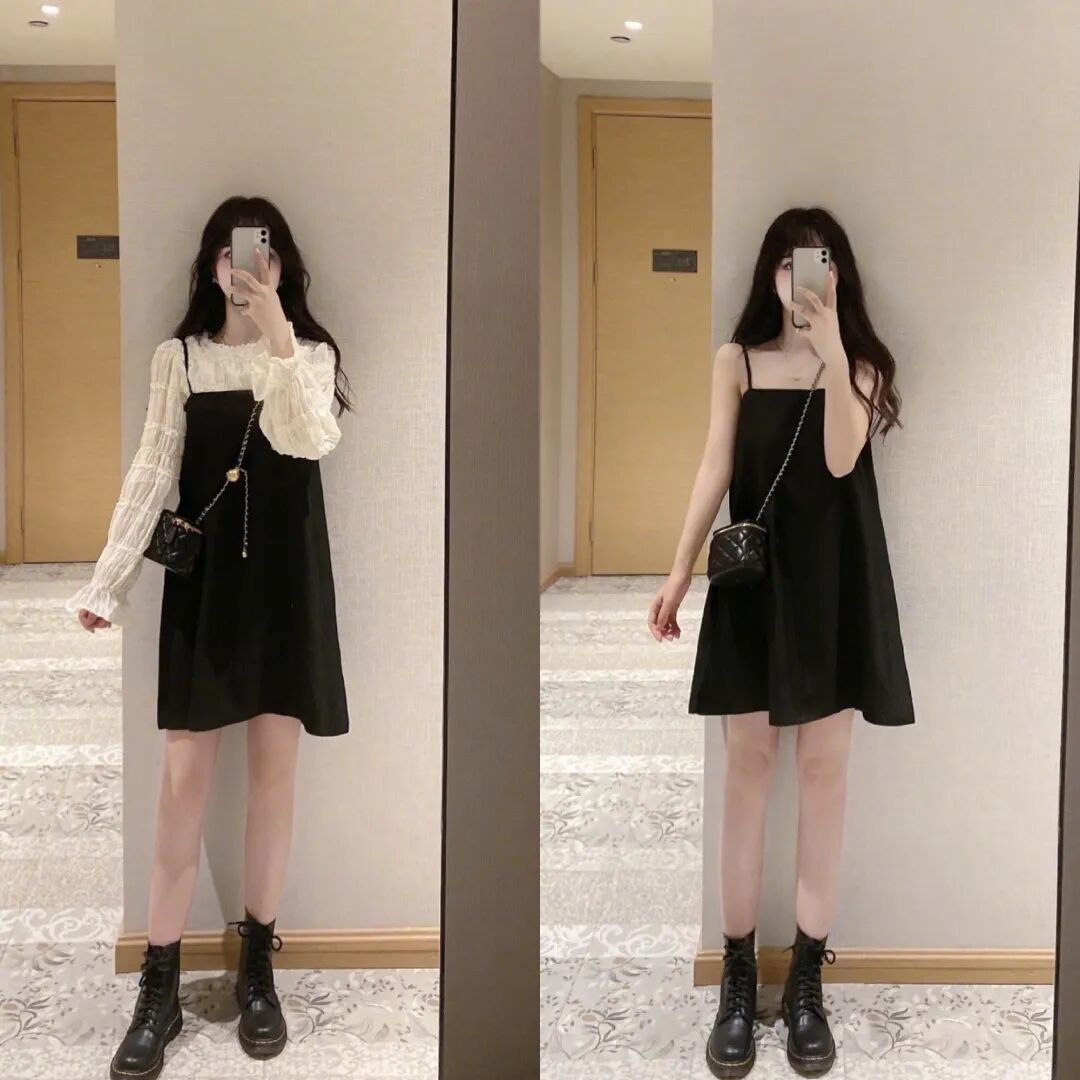所以这个时候我还是比较推荐吊带+打底的,而且层次感看起来会更好~