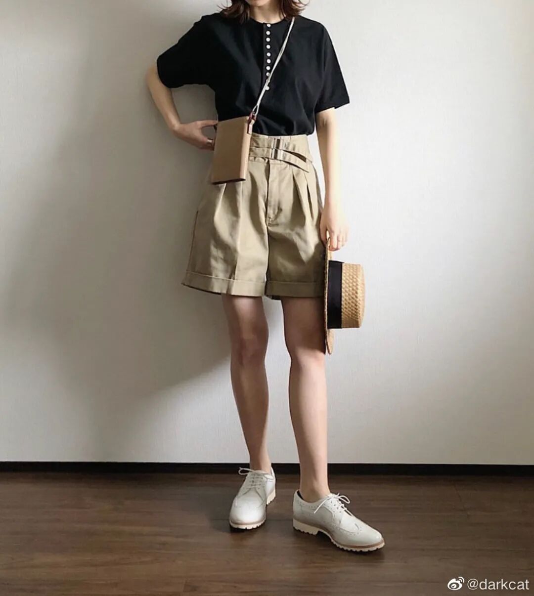 百慕达短裤就是“剪短了的西装长裤”,宽松舒适,透气好穿,特别适合胯宽和大腿根部粗的女生。