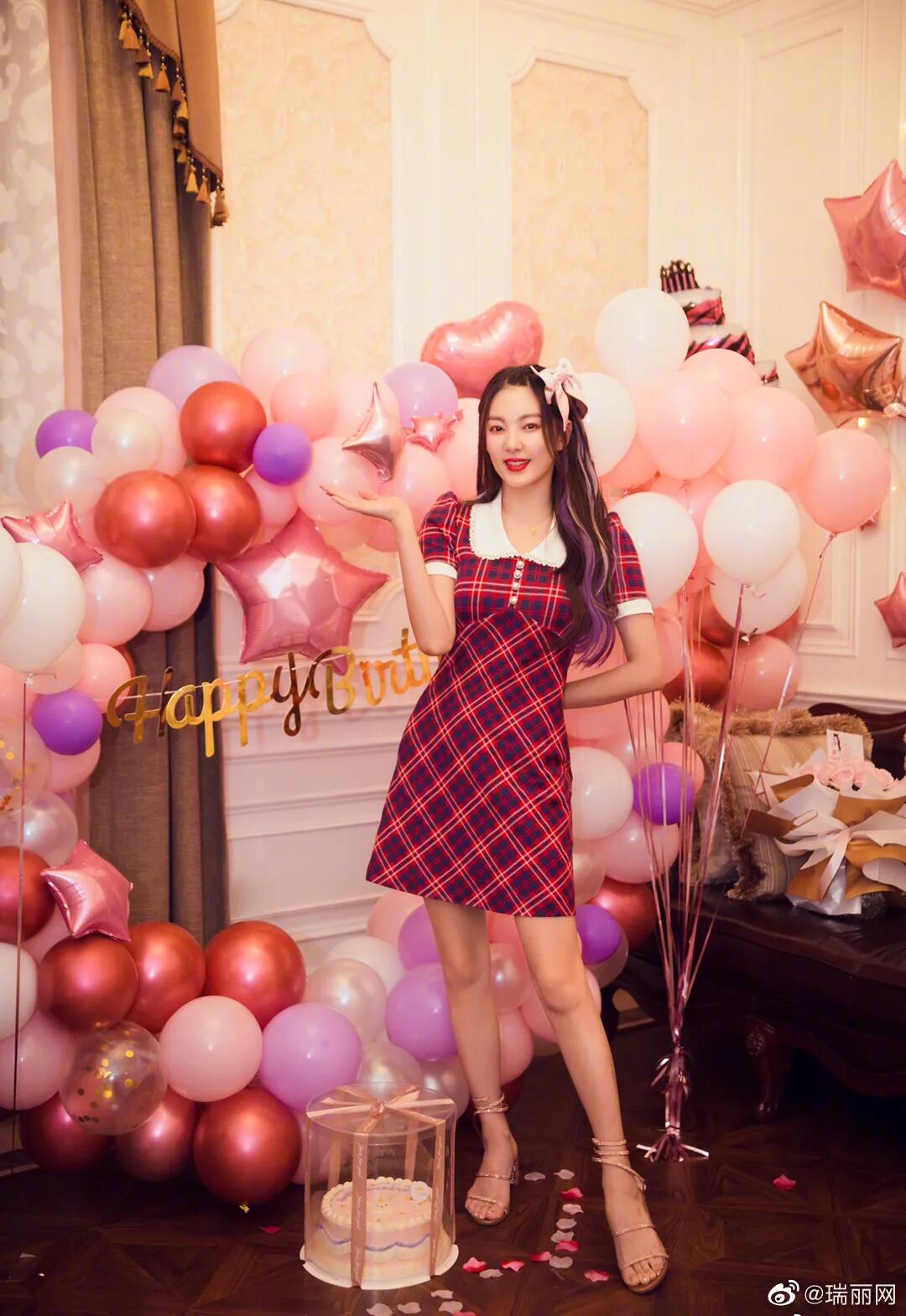 而热巴的呢,她的凉鞋口比较靠下,卡在了脚踝处下方,也是可以拉长腿部比例的。