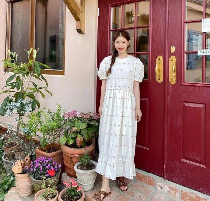 第一套要给大家推荐的组合就是连衣裙+凉拖了,这真的是一对超级休闲舒服的组合。