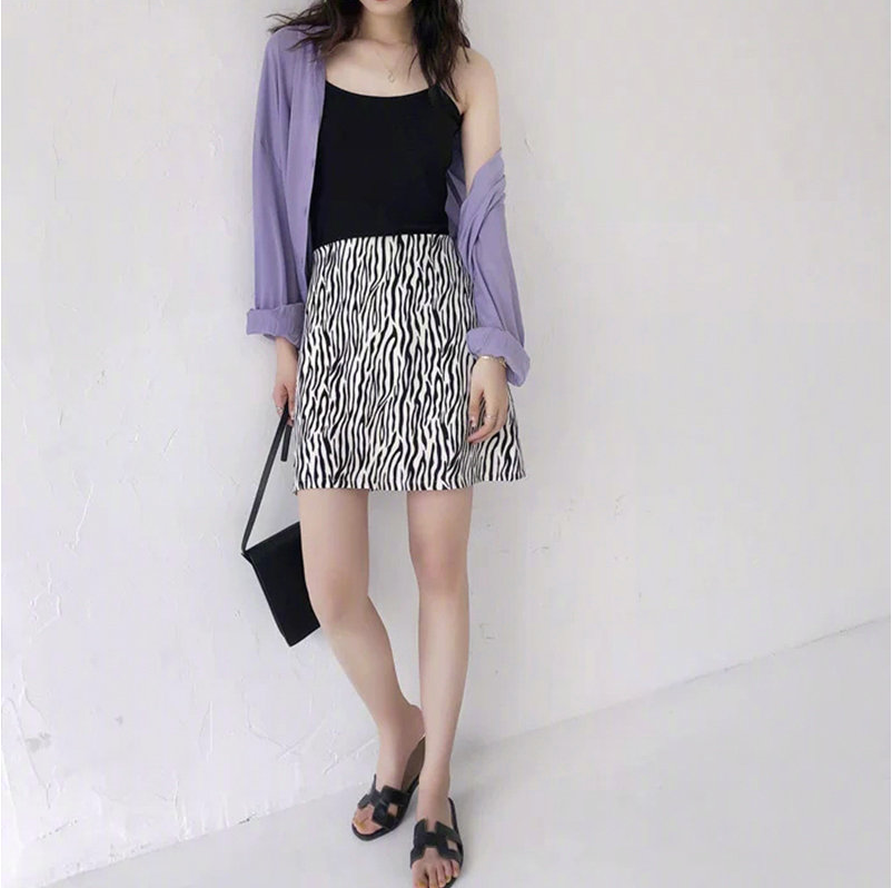 同理可得,吊带衫也是可以用这样的搭配法,半裙选择有特色的一点的款,整体会非常亮眼。