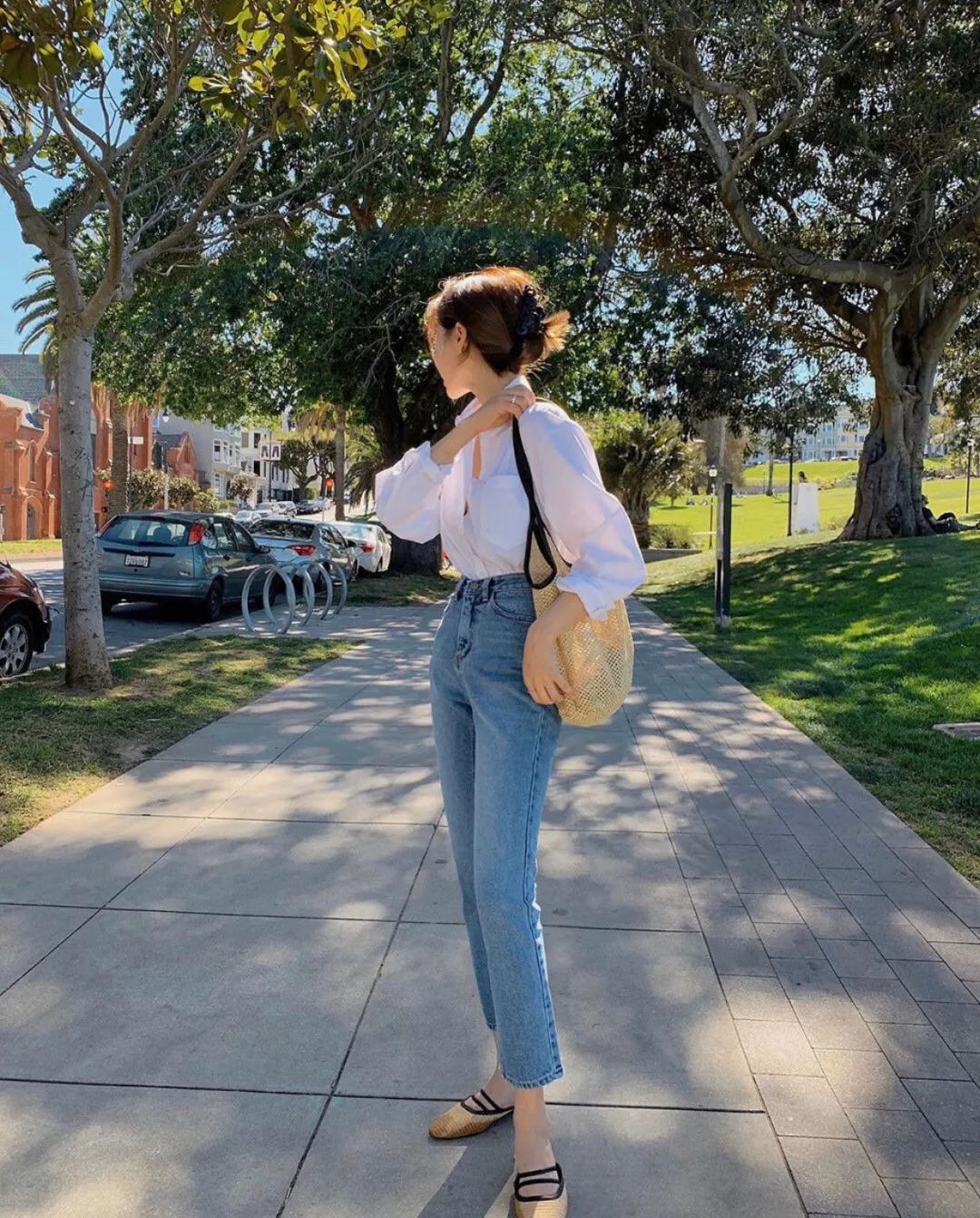 好处:衬衫一年四季都是王牌单品了,让衬衫不显得那么正式的搭配cp当然是牛仔裤了~