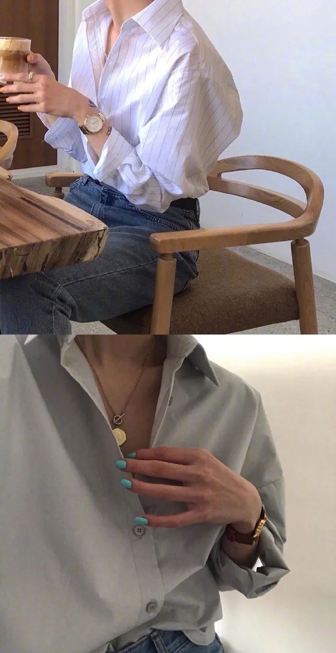 有多少人喜欢穿衬衫但是又没穿好的?觉得太正式?不如试试搭配牛仔裤呀!休闲感立刻扑面而来~