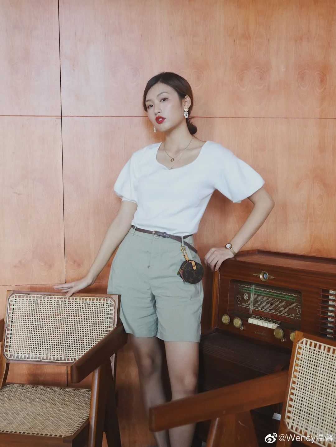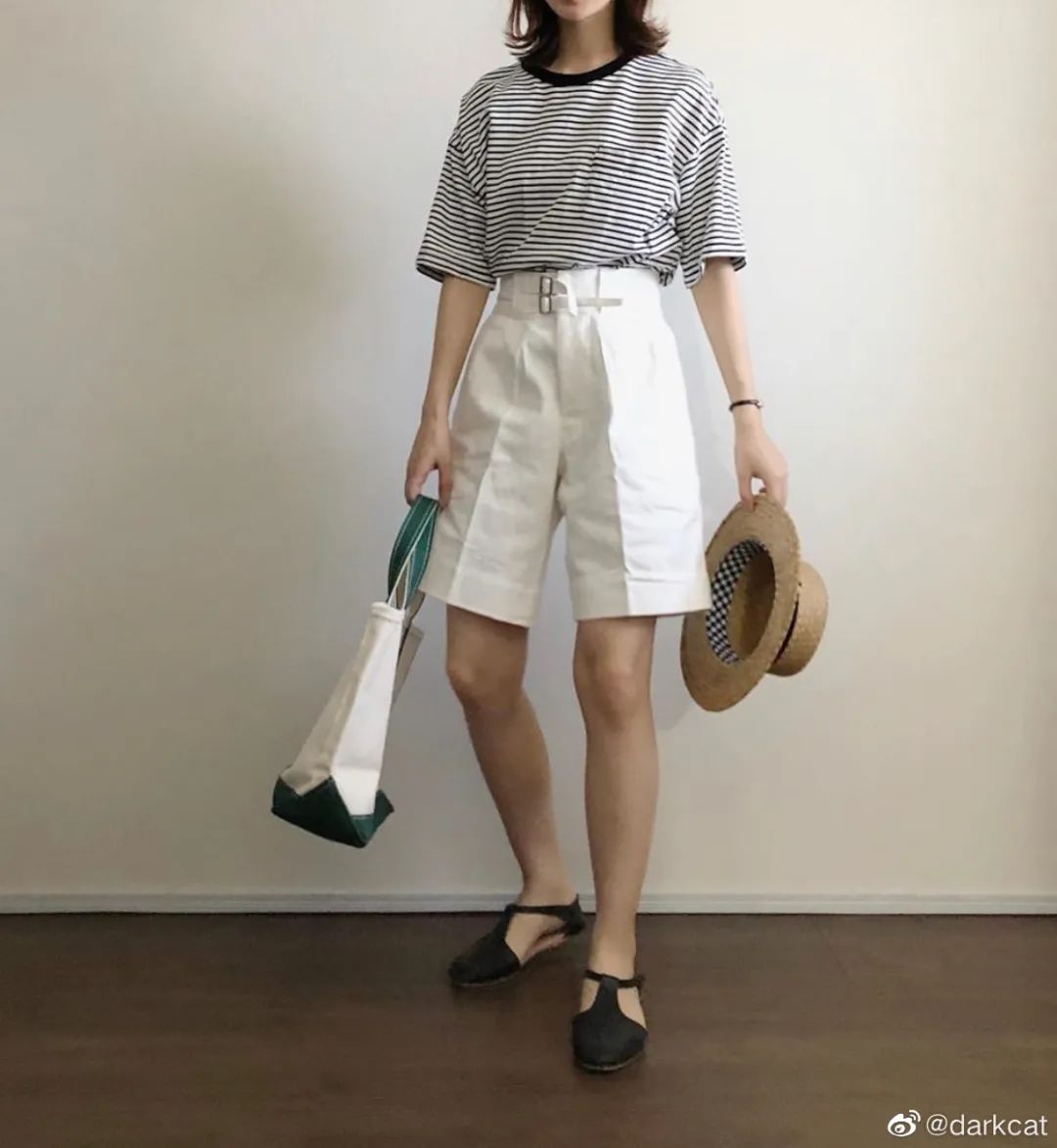 百慕达短裤就是“剪短了的西装长裤”,宽松舒适,透气好穿,特别适合胯宽和大腿根部粗的女生。