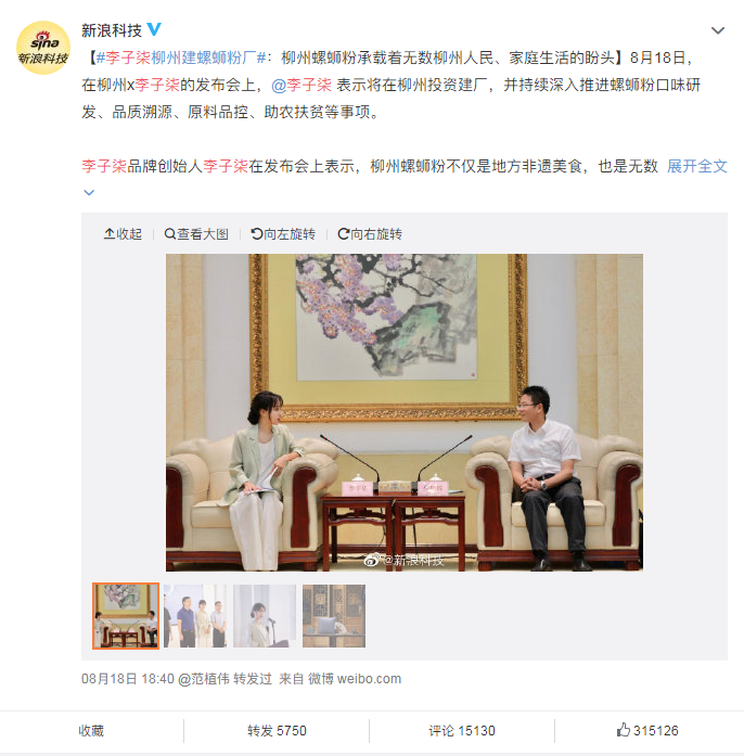 原来是疫情期间,李子柒的“螺蛳粉”销量太太太好了,于是干脆不承包给别人做了,李子柒自己去广西柳州开了厂子。