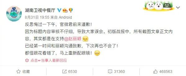晚上,节目组发文道歉,称因为标题内容审核不仔细导致大家误会。