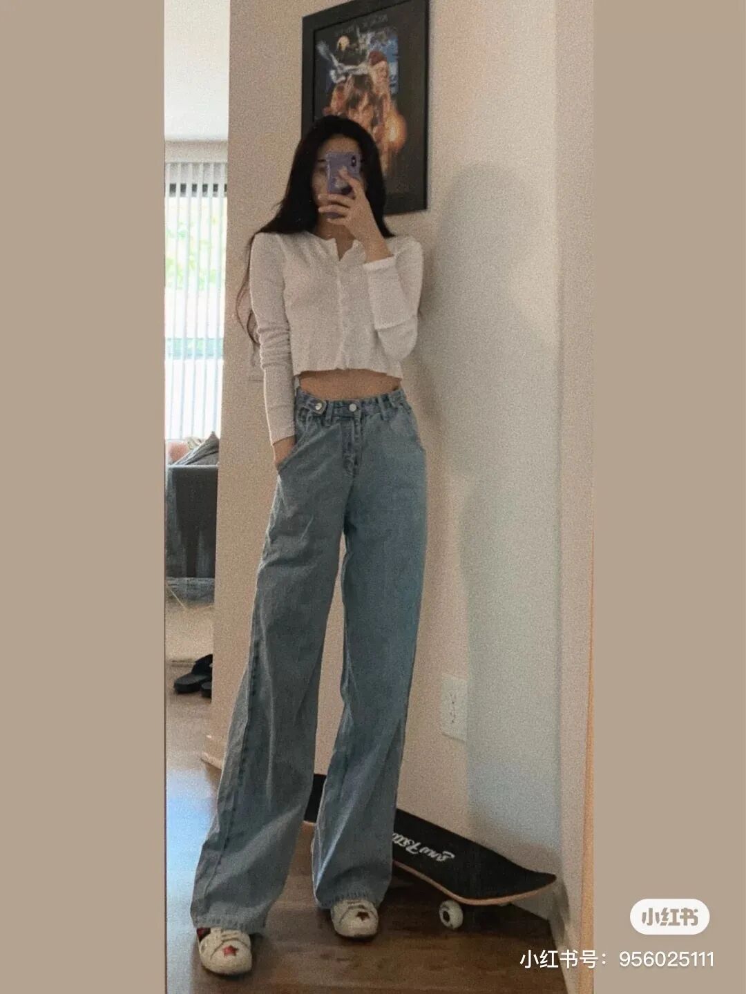 拖地裤简直是显高神裤,裤脚边延伸至鞋跟,很明显的拉长了腿。小腿比例改善,显高的程度UP不止一点点~