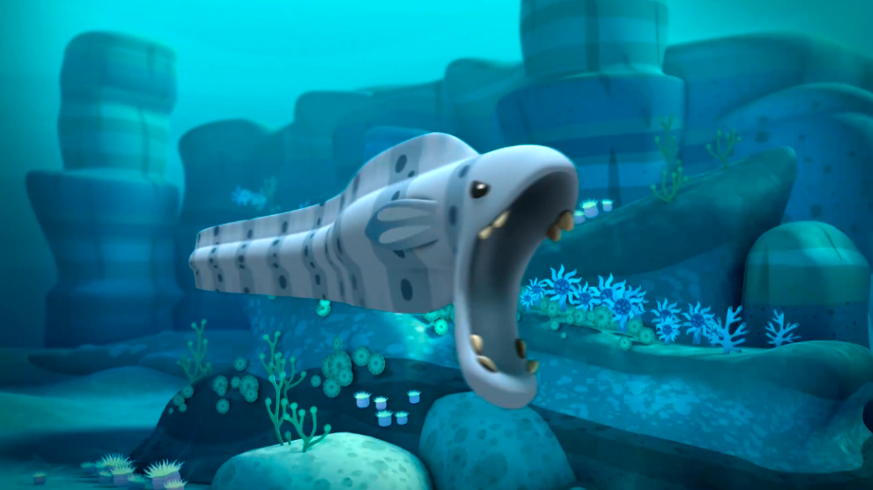 巴克队长马上带着大家逃离,狼鳗不肯放弃,一路张着嘴巴紧追不舍。