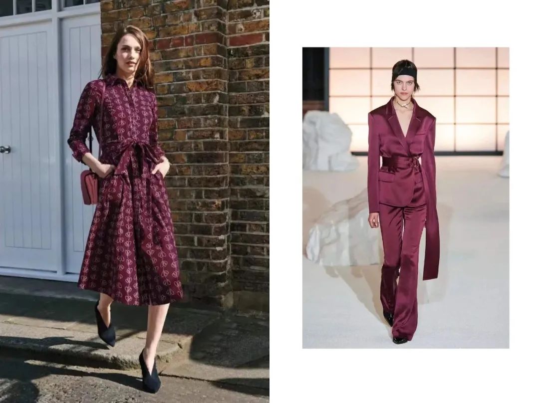 今年秋冬流行的洋红紫,虽然是带了红调的紫色,看模特穿上气场全开,但日常穿依然暗淡,不建议姐妹们尝试。