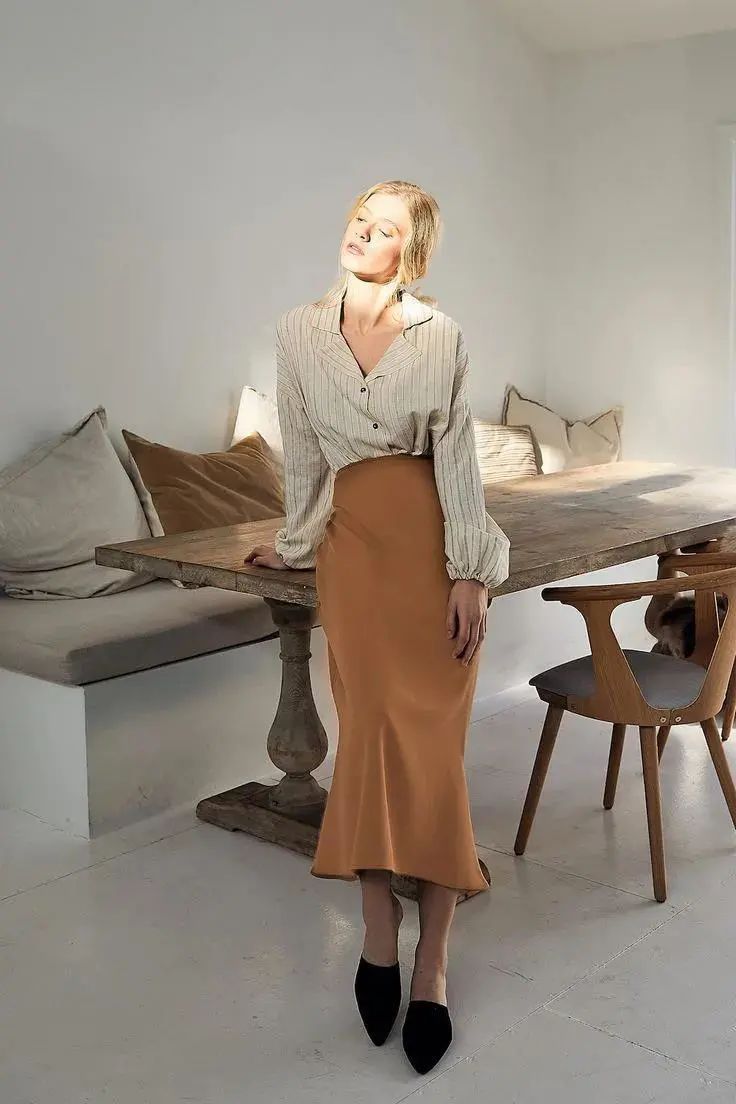 烧砖啡色的裙装、裤装都很极具气质感,轻轻松松就能摆脱路人感哦~